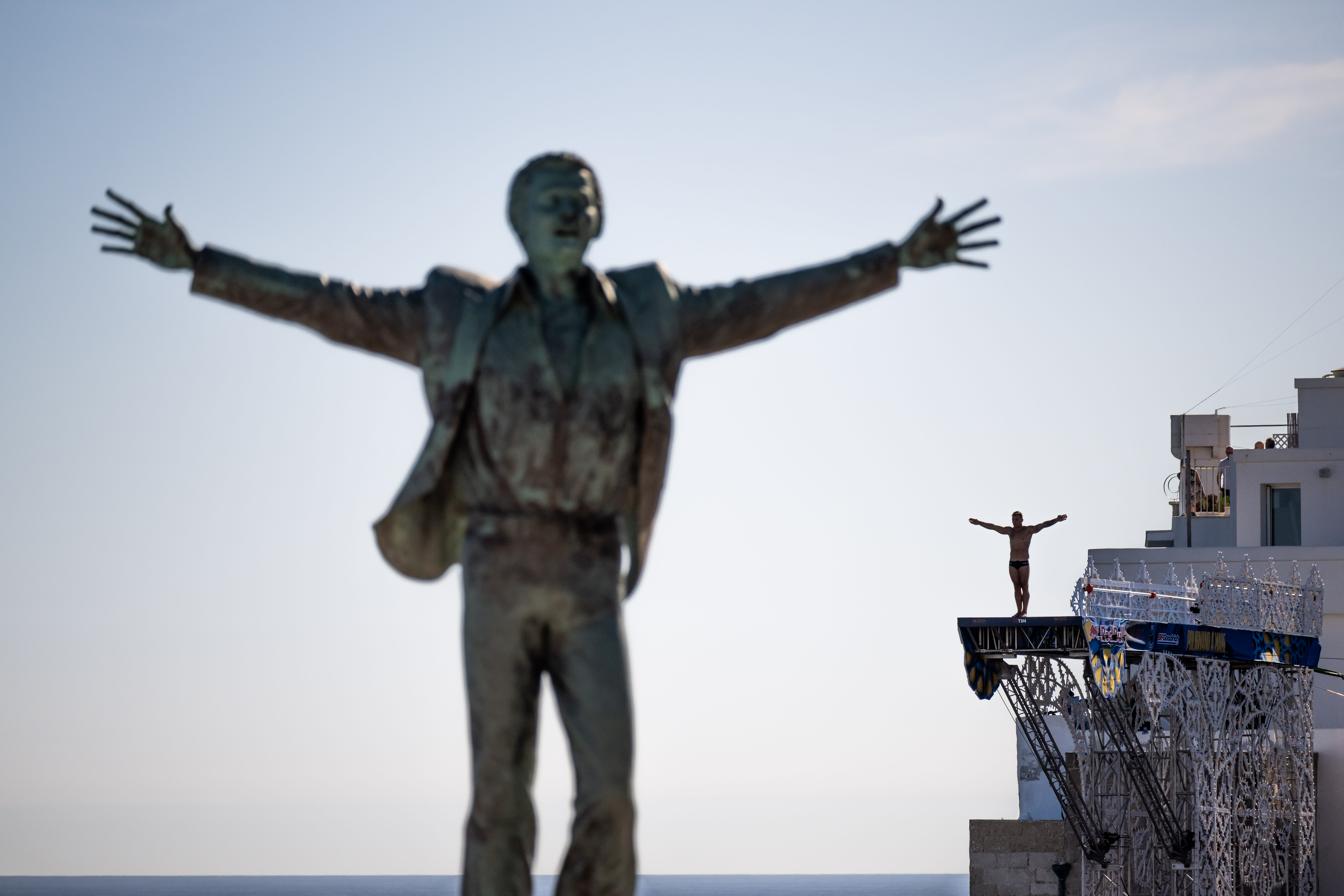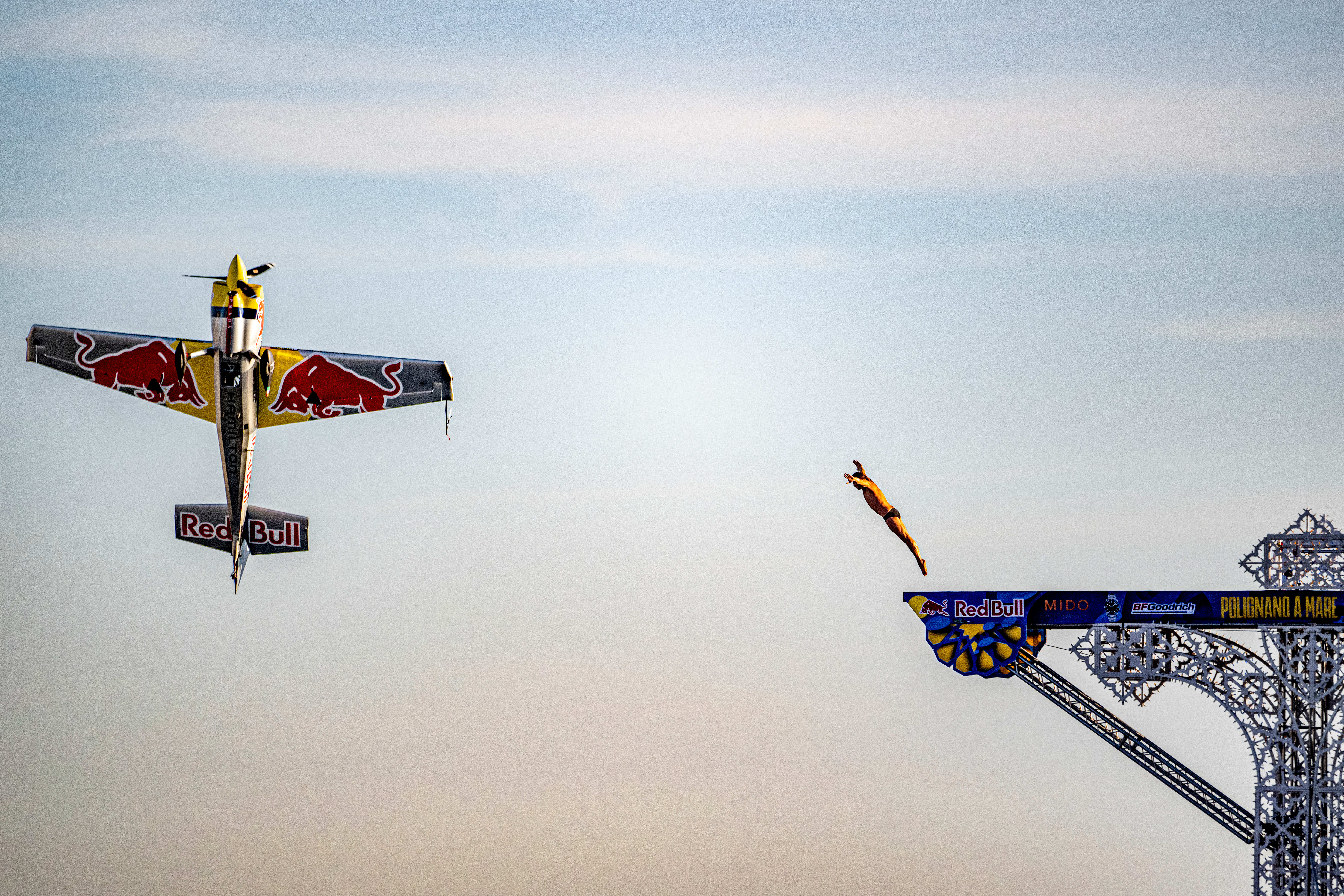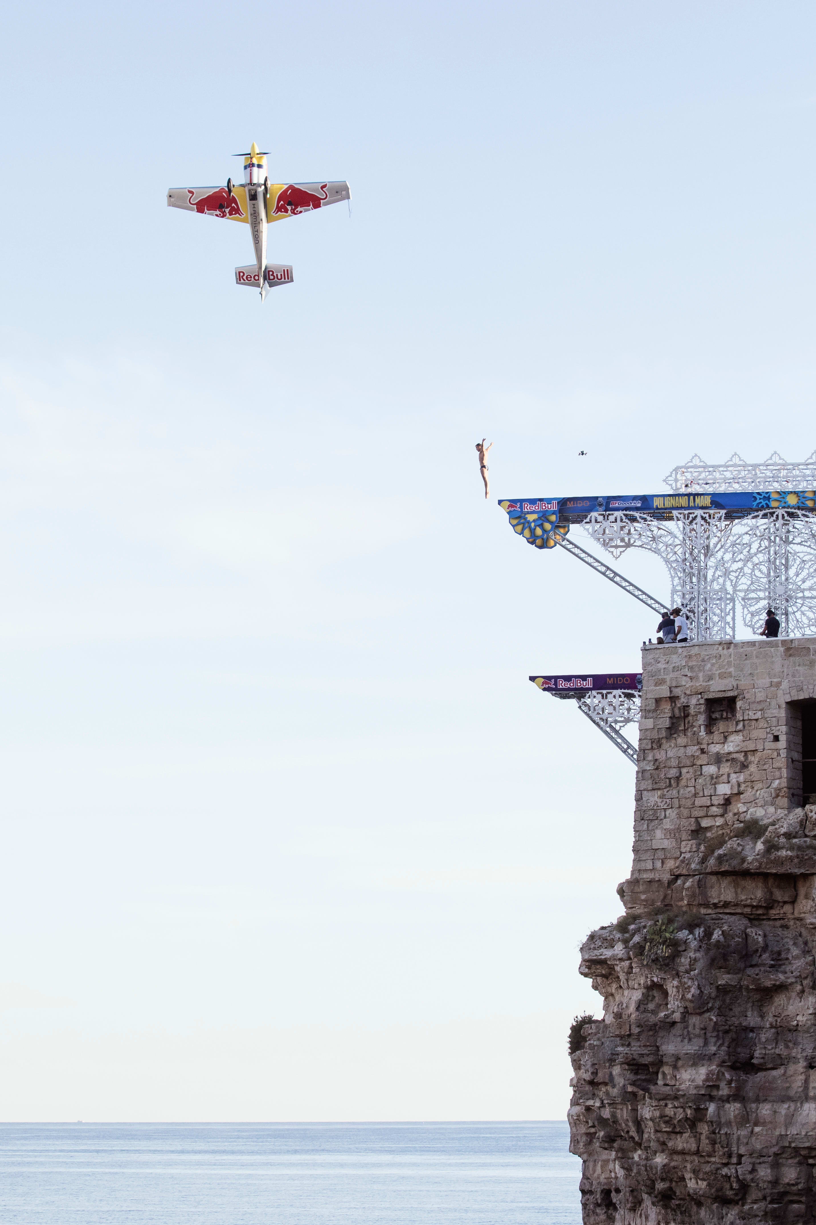 «Редко удается «позавтракать» высокими погружениями. Но сегодня утром у нас был именно такой завтрак. Это было умопомрачительно, когда Дарио, один из самых гениальных летчиков в мире, просто летел рядом с нами и действительно сотрудничал, чтобы сделать что-то настолько уникальное здесь, в Полиньяно, – объяснил Преда, румынская звезда, возглавляющая Мировую серию клифф-дайвинга. – Самой большой проблемой было согласование времени и координация действий всех участвующих сторон. С точки зрения потенциально тревожных элементов, которые привнес самолет и вся динамика проекта, всем нам удалось отодвинуть их на второй план и сосредоточиться на том, что нам нужно было сделать для достижения наилучшего результата».