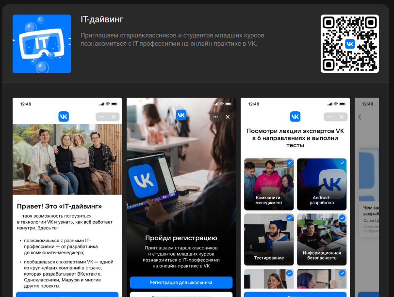 Присоединиться к программе «IT-дайвинг» через специальное мини-приложение «ВКонтакте» смогут