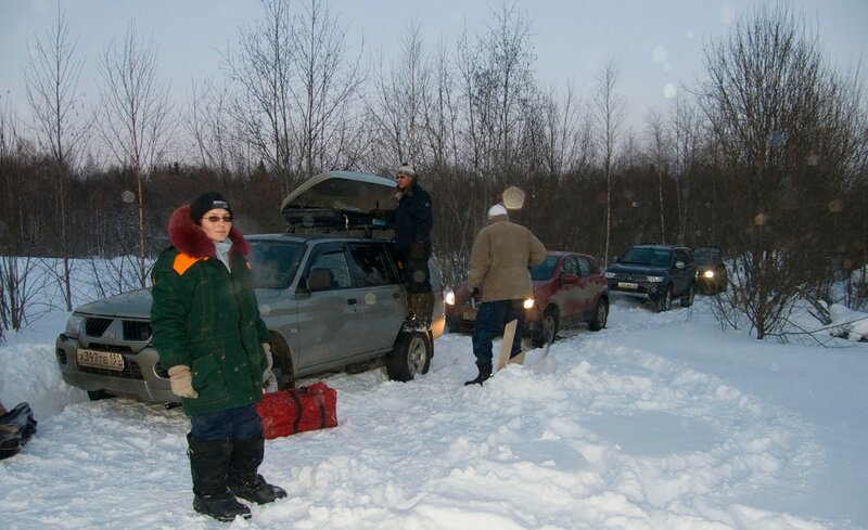 на авто не роехали.. так что бросили автомобили и далее на снегоходе с прицепом)))
