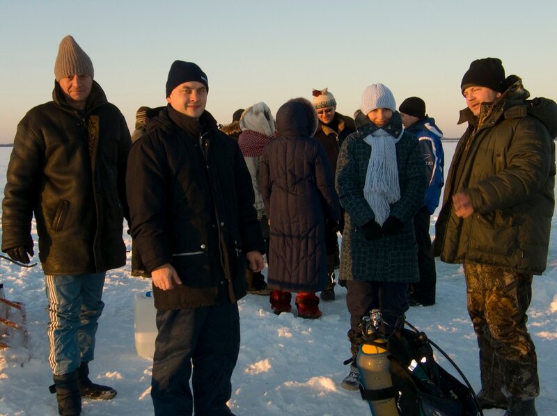 МЫ СДЕЛАЛИ ЭТО!!!!! несмотря на трескучий мороз - дайв состоялся!!!! Выехали часа в 3 ночи, в москве -19, нормально... По мере удаления от мегаполиса температура понижалась пропорционально пройденому пути... в итоге -35 на Селигере, но полное отсутствие ветра!!!!